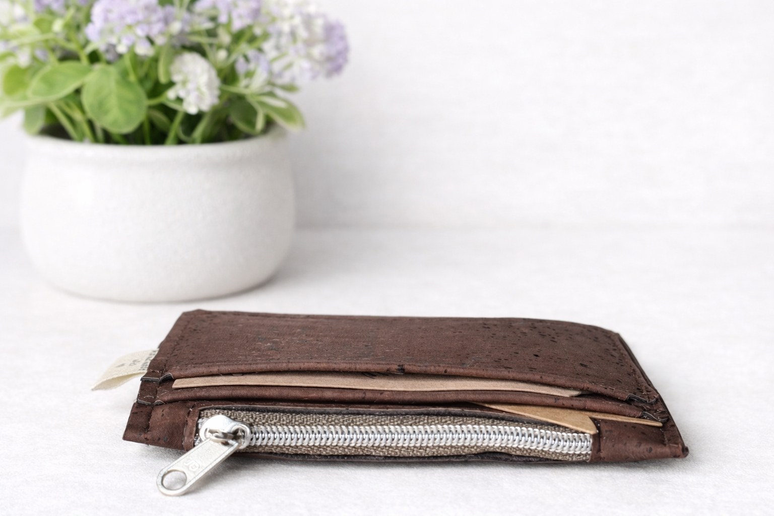 Kork ist ein veganes, nachhaltiges und langlebiges Material. Er ist leicht, formstabil und angenehm in der Hand. Dank seiner kompakten Größe passt der Kartenhalter mühelos in Hosen- oder Jackentaschen sowie in kleine Taschen.